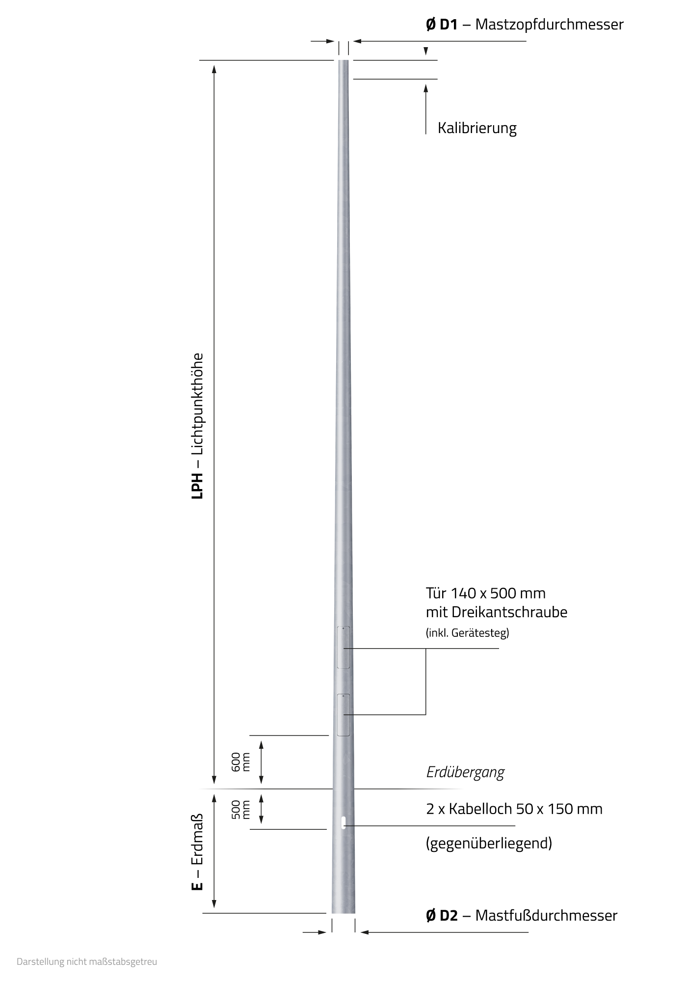 Material: Stahl verzinkt Stahlgüte S275 Mast besteht aus 2 Teilen Zopfmaß (D1): Ø... mehr