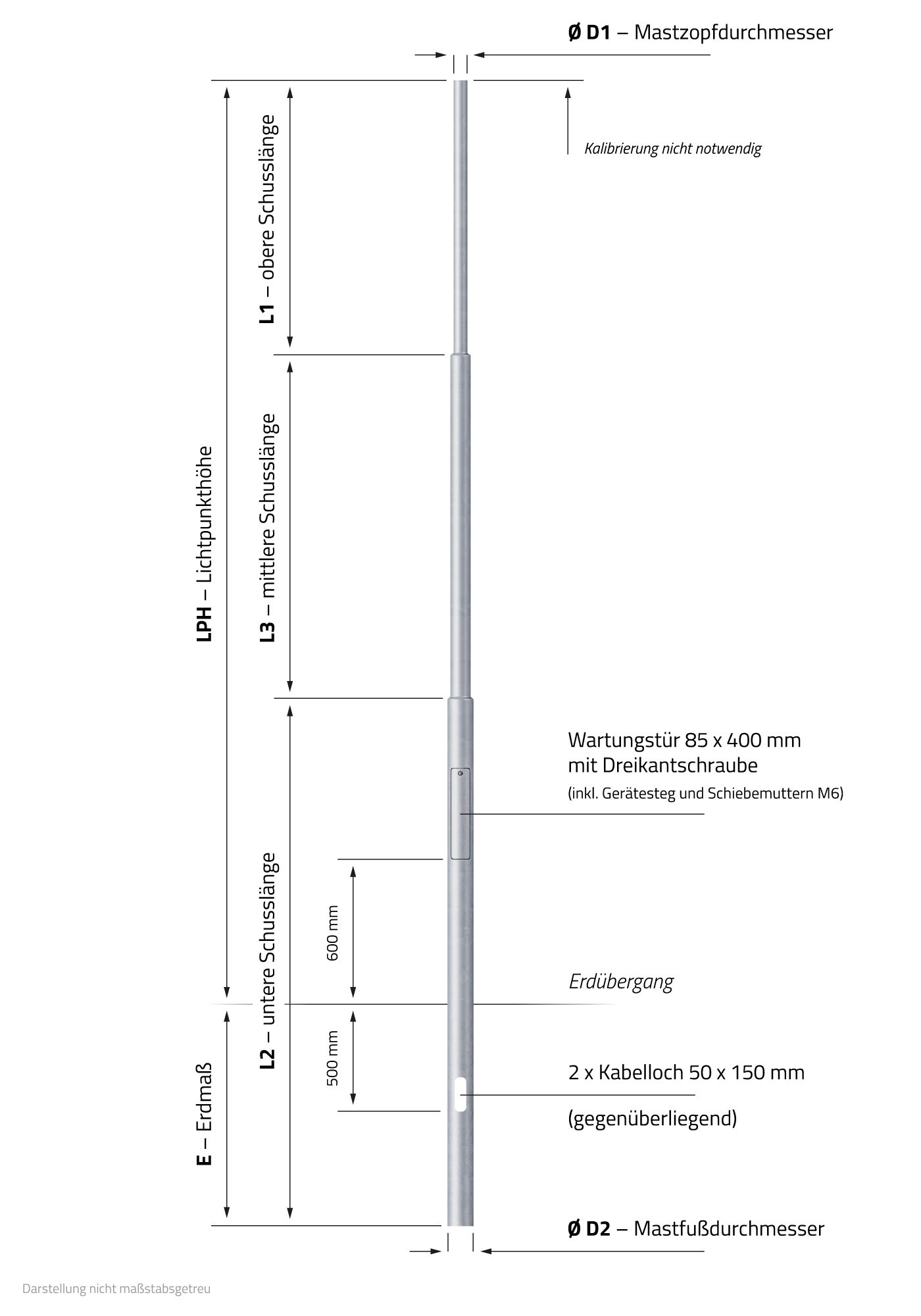 - Mastfußdurchmesser (D2): 114 mm